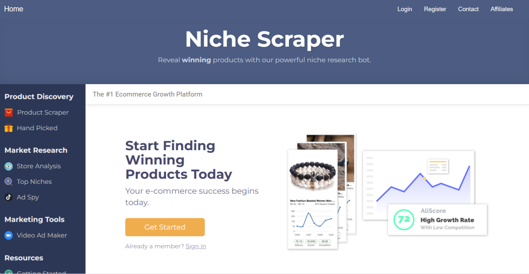 一款强大的电子商务工具,,旨在帮助用户发现和分析利润潜力巨大的利基市场和产品。推送每日各大平台爆款产品,帮助用户更好地评估市场机会,优化电商经营策略。
