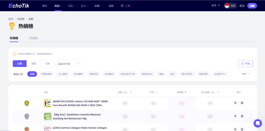通过EchoTik,用户可以找到并筛选适合合作的达人(TikTok上的受欢迎创作者),发现具有潜力的爆品,并进行商品销量和推广效果的分析。平台提供多个国家的达人、视频和商品数据,为用户提供全面的市场洞察和决策支持。