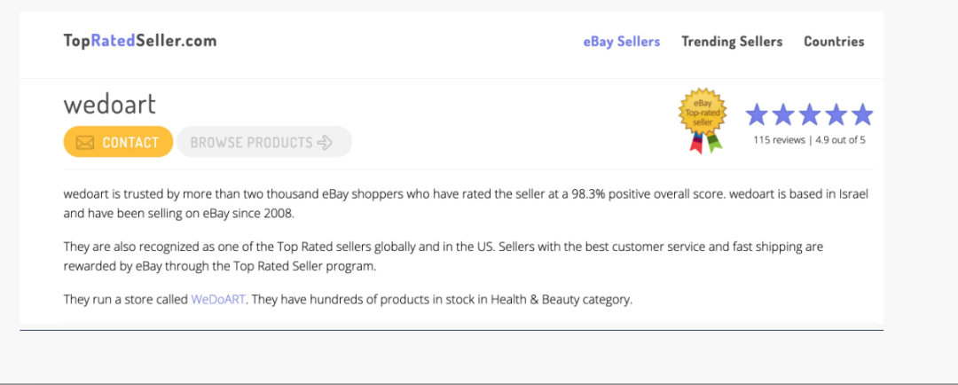 Topratedsller可以按照销量排名,筛选eBay TOP大卖家,也是eBay必用选品工具之一。