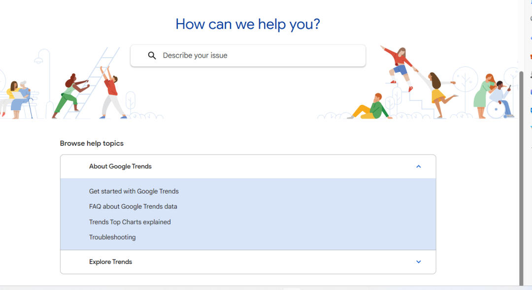 在帮助中可以查找更多有关Google趋势的使用方法。有什么疑问可以在搜索框中输入并查找解决方法。