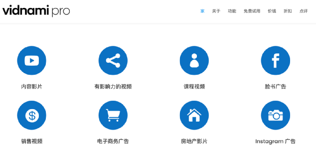 在Vidnami平台,用户可以选择不同的视频形式,包括销售视频、电子商务广告、课程视频、Facebook广告、房地产影片等。费用方面,Vidnami月费49美元,可以制作720p的视频,无使用次数限制。