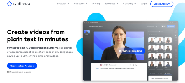 Synthesia是一款基于先进自然语言处理(NLP)和机器学习算法的视频制作工具,在没有任何演员、摄像机、麦克风等设备情况下,可以自主生成虚拟主播视频,并支持字幕、音乐和背景等元素。