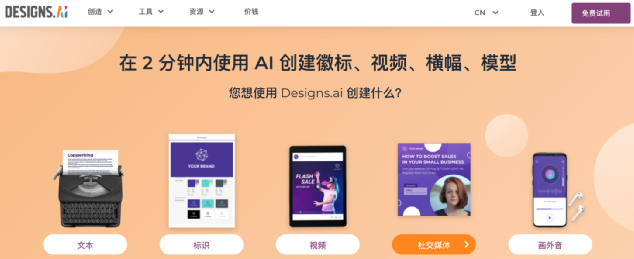除了快速生成品牌标志、网站设计等,文字转视频功能也是Designs.AI的重要功能,并支持图像、音乐等元素的添加。