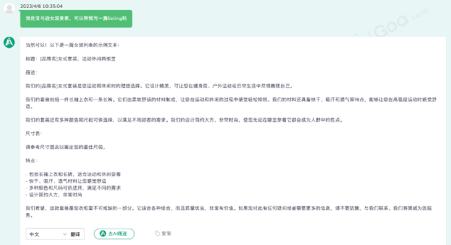 如果你选择“去AI痕迹”,系统会把去除后的内容,直接翻译成英文。点击翻译,就可以得到中文版、没有AI痕迹的listing。