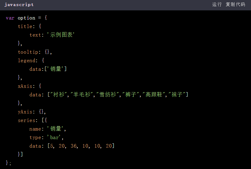使用setOption方法将配置项应用到ECharts实例上,从而生成图表。例如: