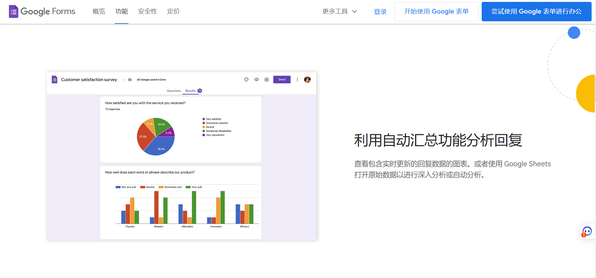 Google Forms提供了数据统计和分析功能,并且可以与Google Sheets等其他工具进行数据处理和展示。