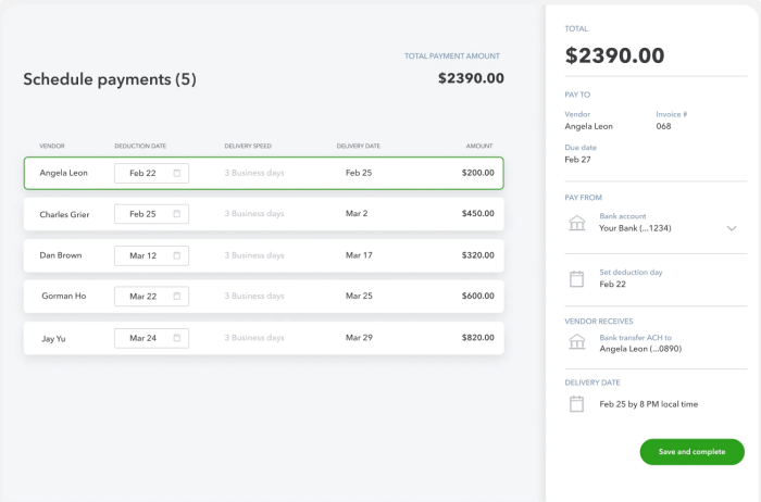 用户可以通过QuickBooks实现在线转账和电子发票管理。