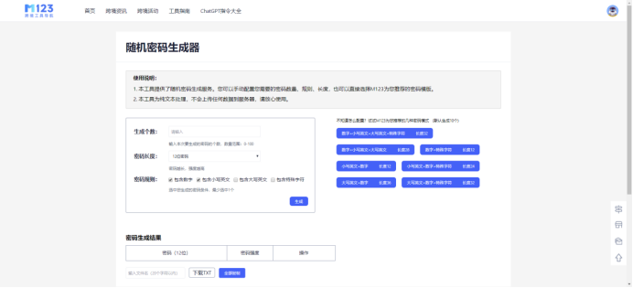 随机密码生成器作为一款保障账户安全的工具,可以帮用户生成安全随机密码,有效地保护了用户的账户安全。对于需要使用数字账号的用户来说,随机密码生成器成为了不可或缺的好帮手。