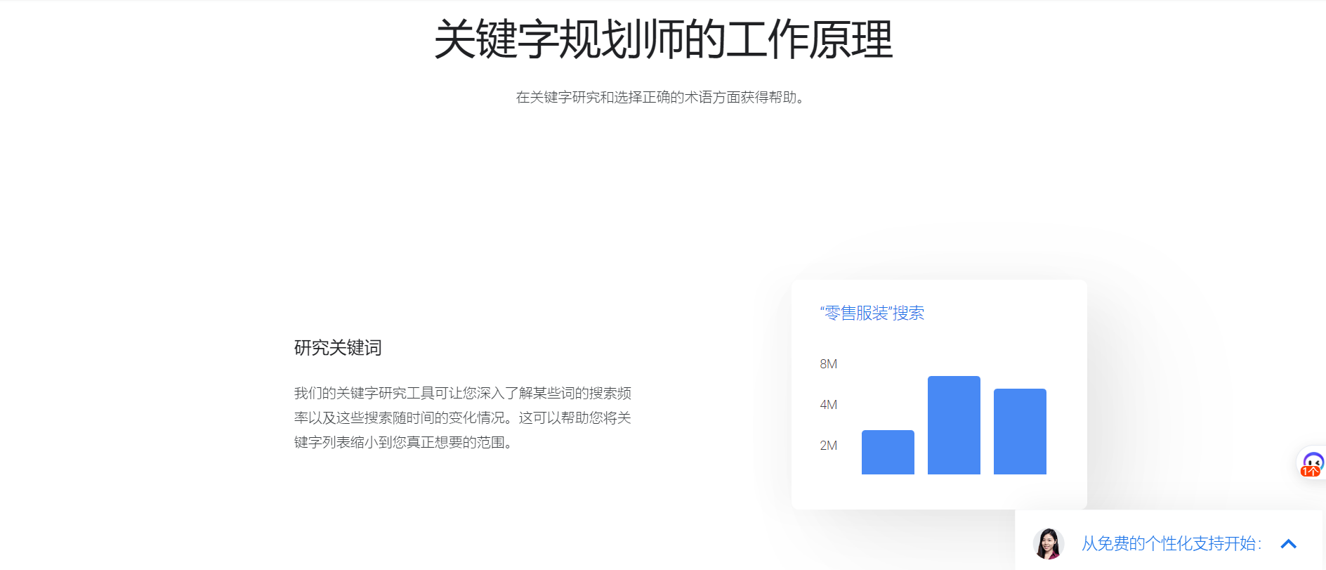 关键字规划师工具是谷歌AdWords提供的一种免费工具,它主要用于帮助商家们进行产品定位和关键词研究。通过输入与广告相关的词汇或网站链接,即可获取相关的关键词列表和数据。用户可以根据关键词的性质和搜索量等数据,制定广告计划并提交到广告投放平台进行审核和投放。