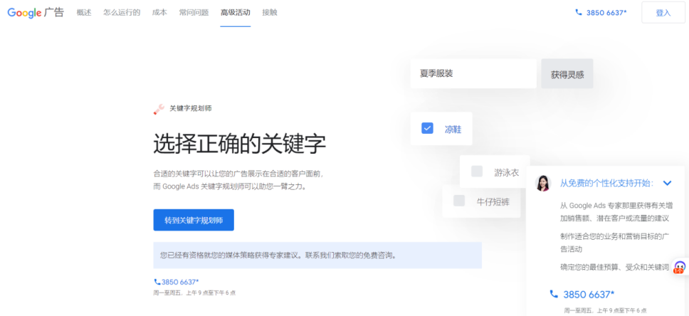 商家们在使用谷歌搜索广告投放广告时,需要选择与自己产品相关的关键词,以便让潜在客户能够更容易地找到自己的产品。但是,商家们往往不知道应该选择哪些关键词,以及这些关键词的搜索量和竞争情况等信息。这时候,关键字规划师工具便可以派上用场了。商家们只需要输入自己产品相关的词汇或网站链接,就可以获取到与自己产品相关的关键词列表和数据。商家们可以根据这些数据来制定广告计划,并提交到广告投放平台进行审核和投放。