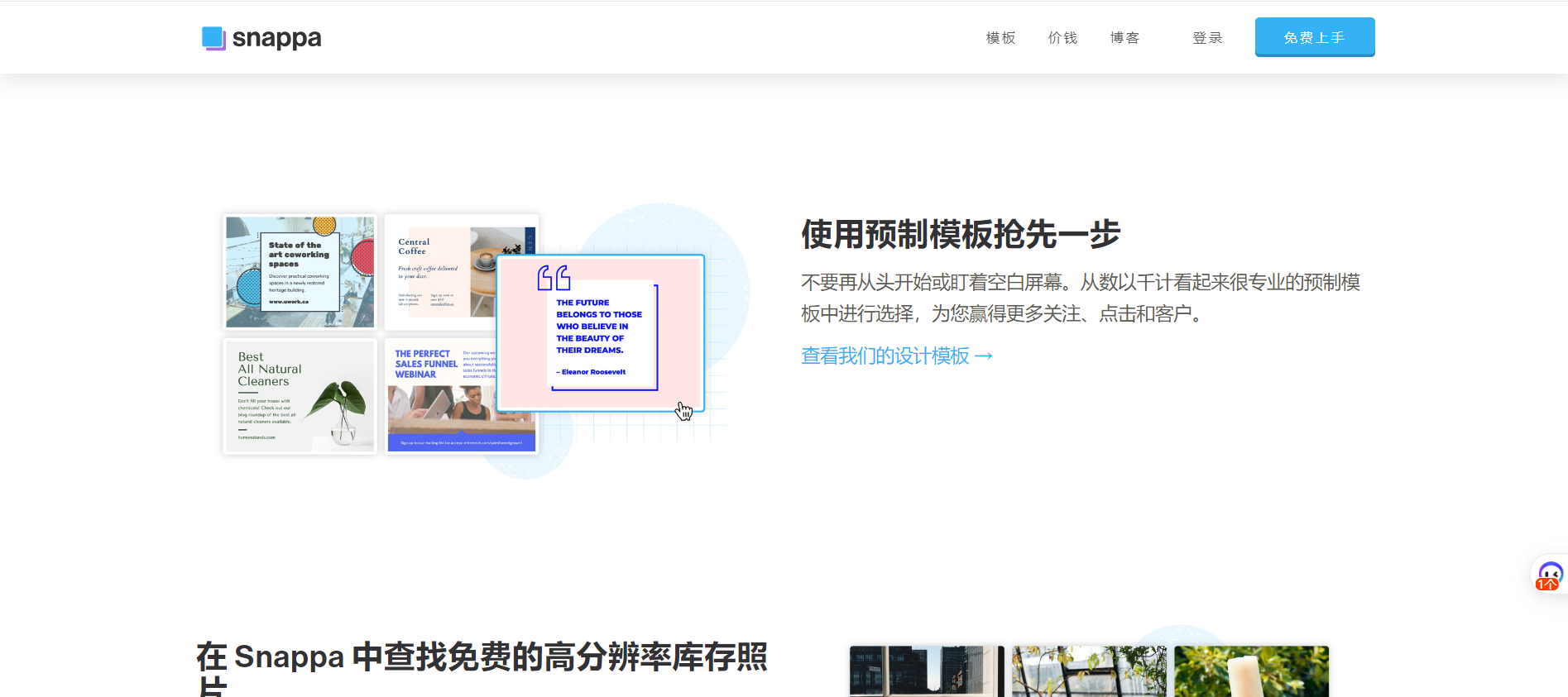 Snappa(点击使用工具)是一款在线网站,专注于为全球用户提供快速创建具有专业外观的视觉内容的工具。该工具在跨境领域应用广泛,为用户提供了丰富的设计元素和模板,可用于制作海报、社交媒体图像、广告和其他视觉内容。本文将从基础功能介绍、工作场景应用、工具使用技巧和工具优点四个方面介绍该工具。