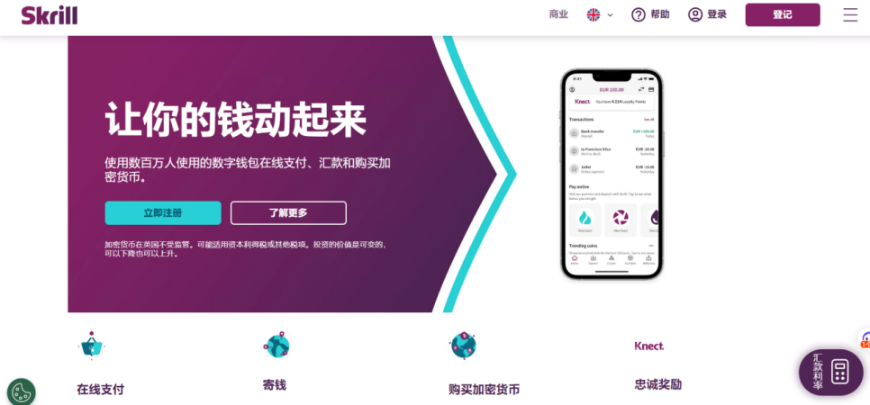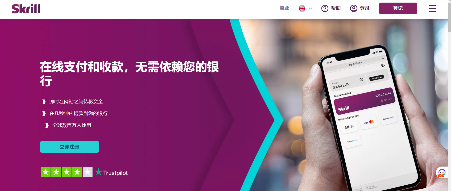 Skrill支持跨境电商平台支付、个人转账、广告费用支付和外包费用支付等多种场景。