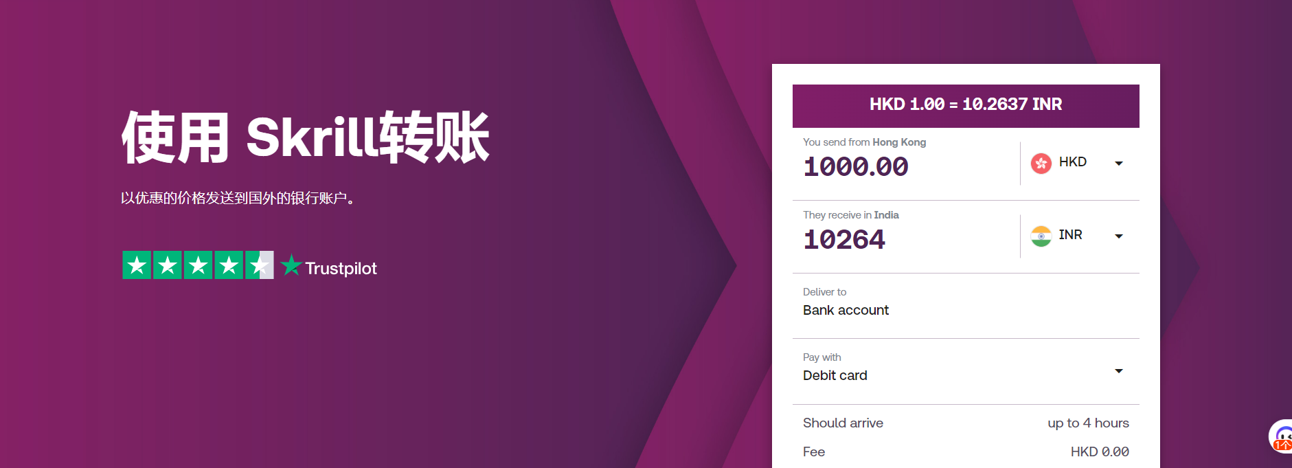 支持跨境转账,用户可以通过Skrill平台将资金转移到世界各地的账户上。