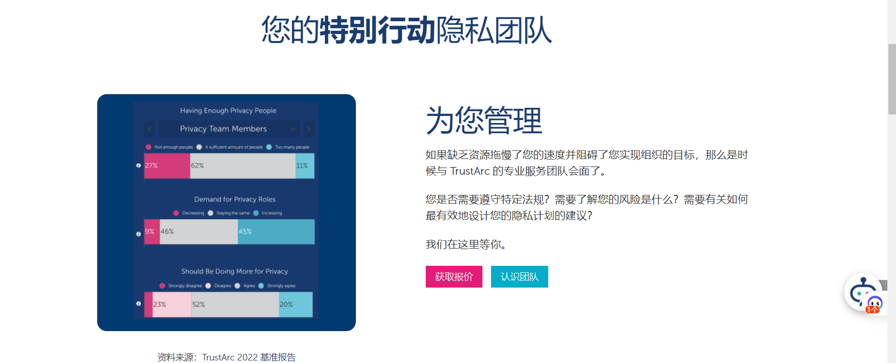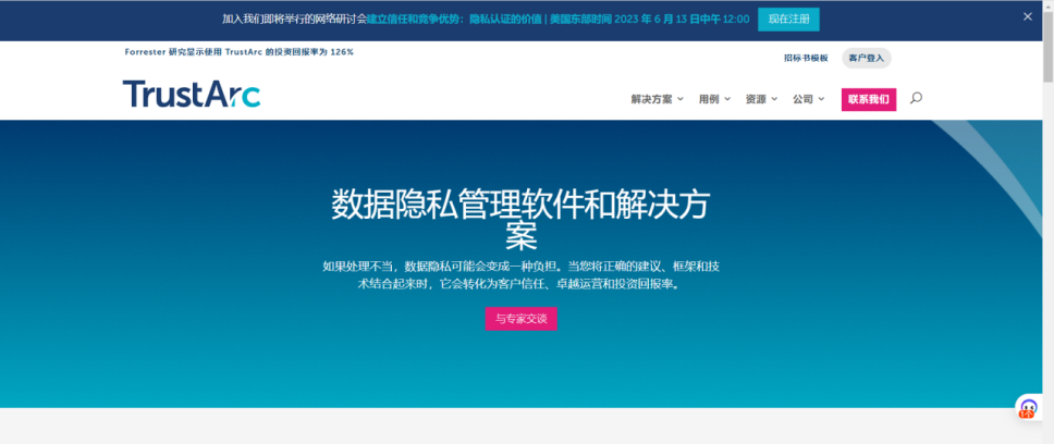 TrustArc隐私与合规解决方案(点击查看详情页)是一款专门针对跨境领域的隐私保护工具,它不仅提供了基础的隐私保护功能,还可以应用于各种工作场景中。