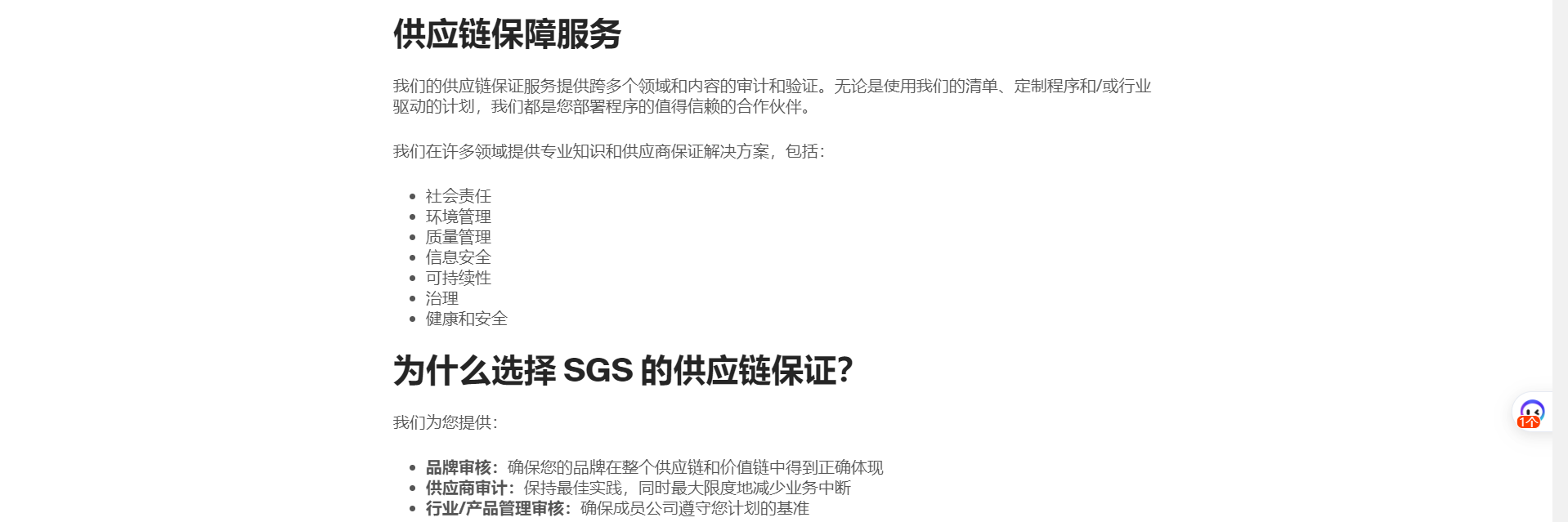 在供应商审核方面,SGS可以通过对供应商的资质、生产设备、制造工艺等方面的审核,为其客户提供有力的供应链保障。