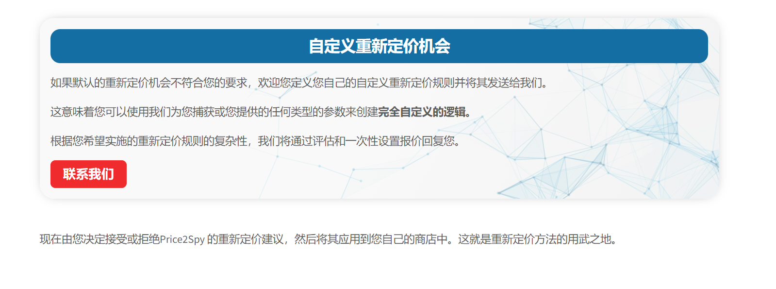 该软件分析竞争对手的定价策略,可根据对手的定价策略来制定更加合理的定价策略。