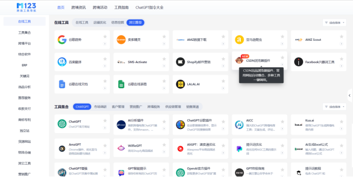 最后,为了帮助卖家发现更多的优秀工具,小编推荐M123跨境工具导航站(https://www.m123.com/)。这个站点收录了众多跨境电商常用的工具,包括翻译工具、营销工具、物流工具等等,还提供详细的评测和使用说明。通过M123跨境工具导航站,卖家们可以迅速发现并掌握各种有效的跨境电商工具,将其运用到实际操作中,从而提高运营效率,解决语言障碍问题。