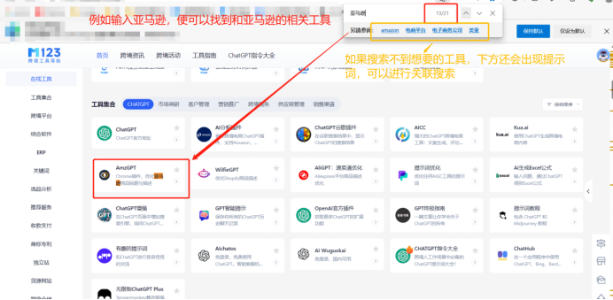 除了实用和方便,M123跨境工具导航站的界面也非常友好和人性化。简洁明了的设计,精心规划的版块,以及严格筛选后的工具,为用户提供了强大助力。同时,这个导航站还拥有一个非常强大的搜索功能,按下【ctrl+F】输入关键词,就可以快速找到自己需要的工具。