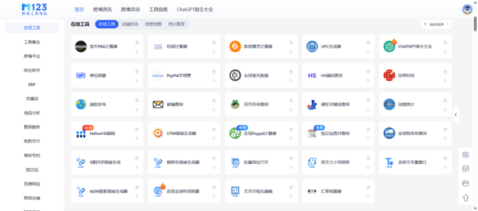 【在线工具】是M123跨境工具导航站的一个重要板块,这个板块为用户提供了各种高效的免费工具,让用户在工作中更加方便和高效。