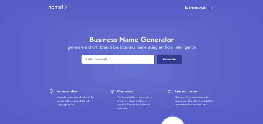 品牌命名和logo生成工具,使用人工智能生成简短的品牌企业名称,上手简单,操作方便,免费使用。