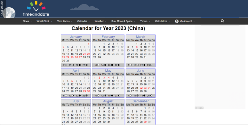一些假期和日期是用颜色区别的,红色为公共假期,灰色为典型的非工作日,黑色则是其他日子。节假日查询,帮助及时了解客户假期,当地风俗,发上祝福邮件,拉近关系,或抓住假期前催单、节日营销等重要时机。