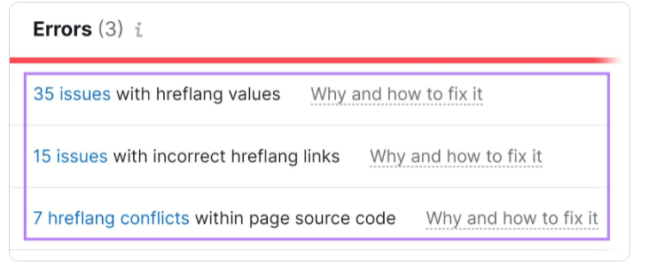 您将看到您的hreflang属性的所有问题的列表,以及如何修复它们的更多信息和指导。