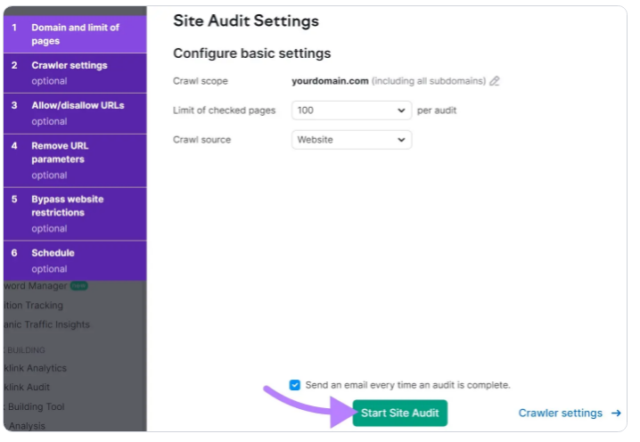 然后,单击“开始站点审计.”