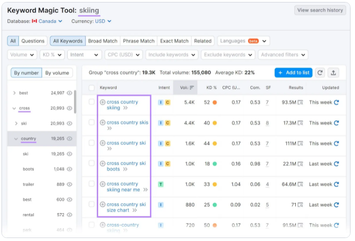通过市场和关键词研究,你可能会发现越野滑雪在加拿大特别受欢迎。