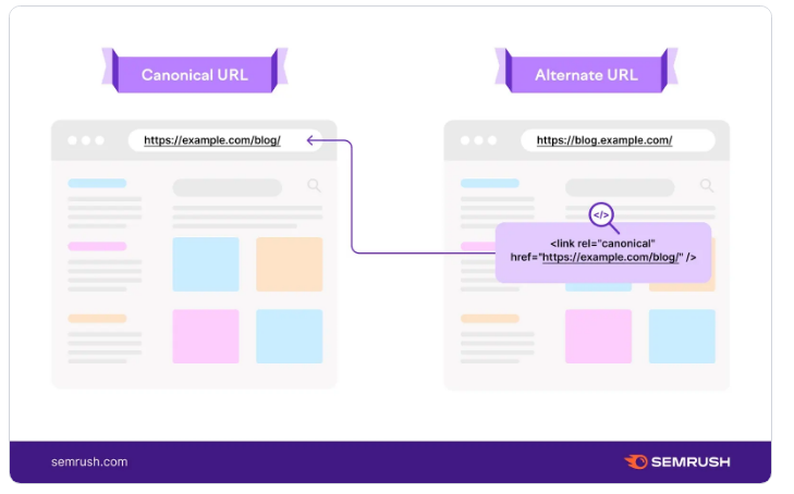可以让搜索引擎知道哪个URL是主URL,方法是使用rel="canonical "标签放在每个备选网页的HTML源代码的< head >部分。