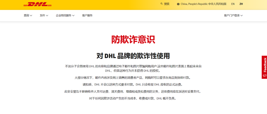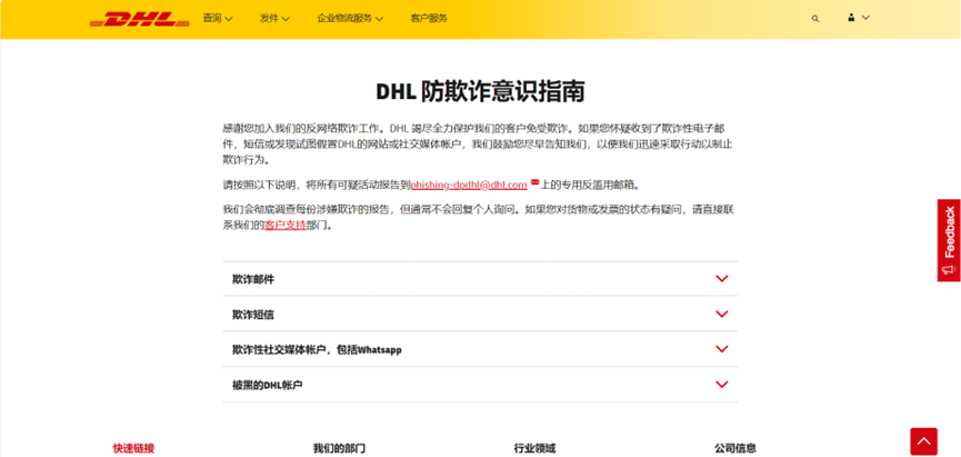 对于使用 DHL 品牌的网站,如果对其真实性有任何怀疑,可以随时通过DHL官方网站的全球网站链接登录其旗下的各个网站。👇