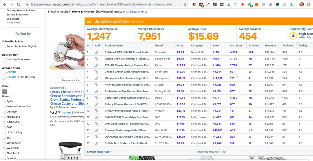 Jungle Scout是一款备受喜爱的Amazon产品研究工具,它可以帮助卖家搜索并发现Amazon上的热门产品和竞争对手,提供销售排名、价格和评价等关键数据。该工具还提供了一些其他实用功能,如下订单、库存和PPC广告监控等。