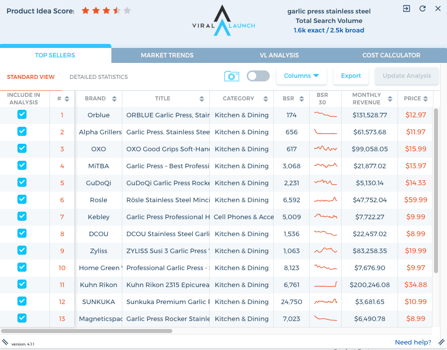 Viral Launch的产品分析工具是其最大的卖点之一。它提供了高品质的产品数据,包括产品排名、销售历史、评价数量以及付费广告情况等。这些数据能够帮助卖家找到市场上最有利可图的产品,并制定相应的销售策略。