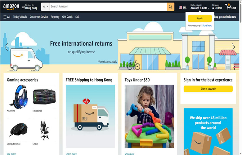 以美国站点为例,我们可以通过以下两种方式登陆美亚马逊官网: