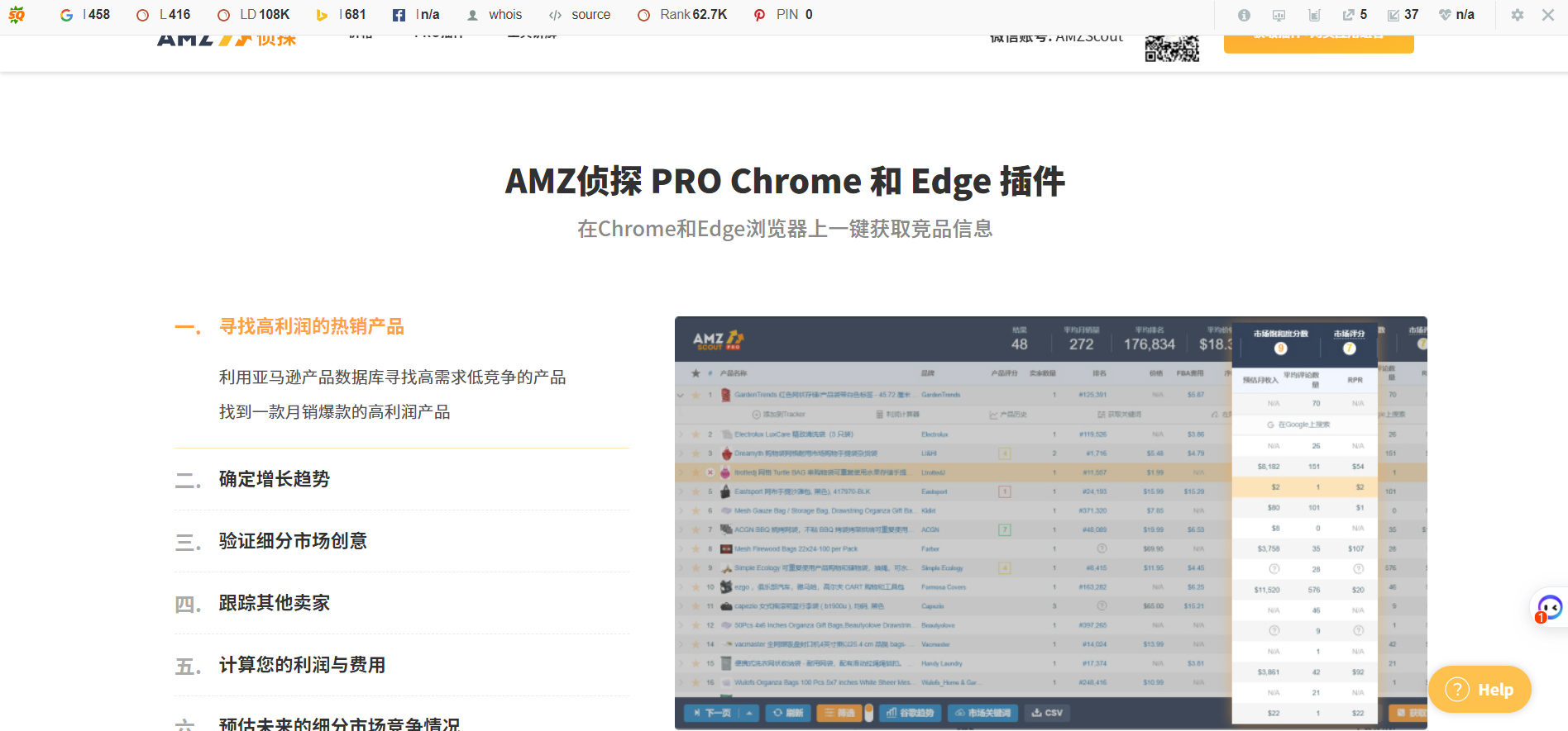 AMZ Scout主要有两种产品类型,分别是网页浏览器插件和独立软件。用户可以根据自己的需求选择相应的产品类型。无论是哪种产品类型,AMZ Scout都提供了以下基础功能: