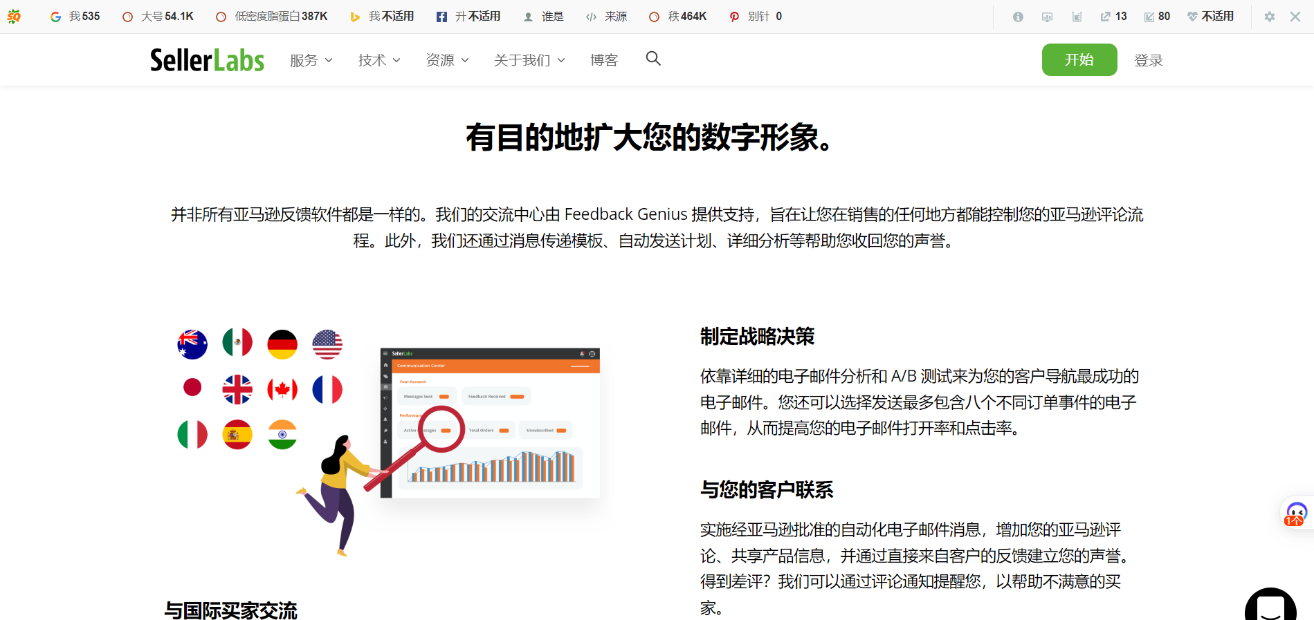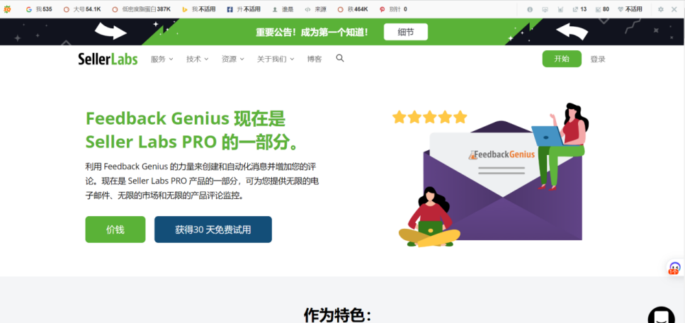 SellerLabs(点击使用工具)是一款在线卖家服务工具,专为在亚马逊上销售商品的卖家提供服务。Feedback Genius(点击查看详情页)是其主打产品,基于付费阅,提供14天的免费试用。Feedback Genius的使用可以帮助卖家提高买家满意度和口碑,从而提高商品销售转化率。下面将详细介绍Feedback Genius的基础功能、工作场景应用、使用技巧和优点。