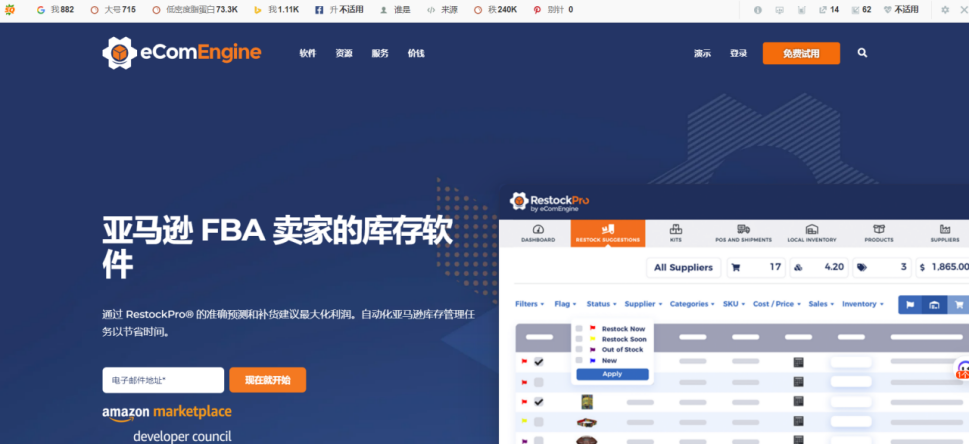 总之,eComEngine是一款非常实用的跨境电商工具。通过使用该工具,卖家可以更加轻松地进行库存管理和补货计划,并且可以更好地了解市场需求和竞争对手情况。因此,我们强烈推荐在亚马逊平台上销售商品的卖家使用该工具。