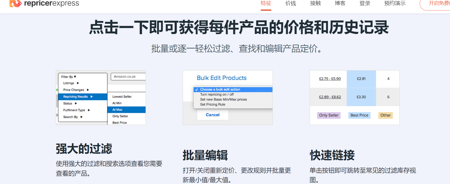 总之,价格重定价repricer express是一款非常实用的工具,在跨境电商领域中可以帮助卖家更好地掌握市场变化,及时调整自身策略,提高销售业绩和收益水平。
