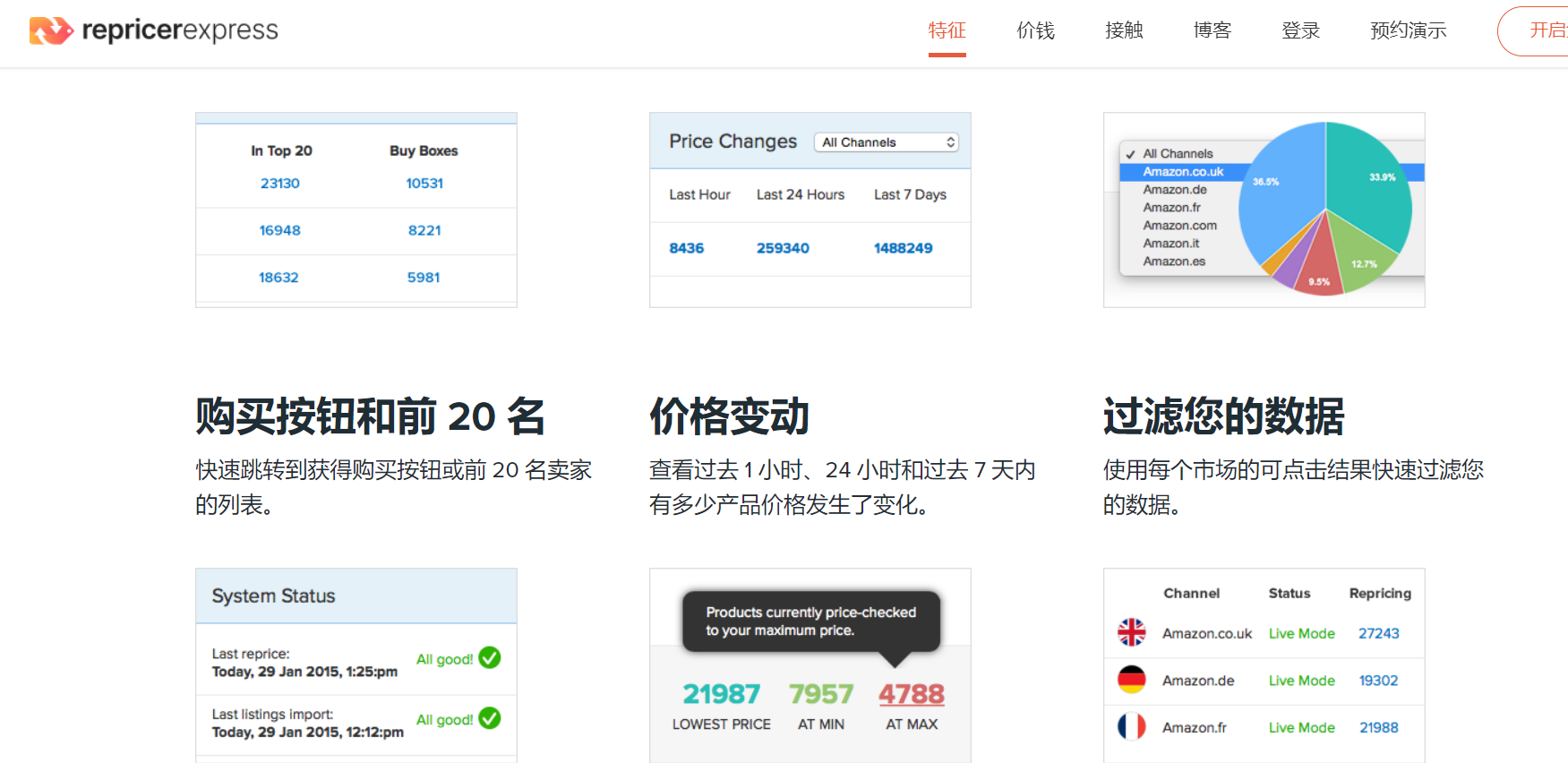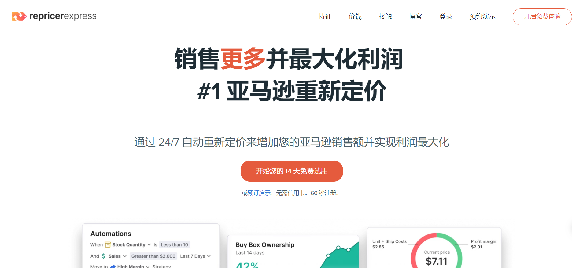 repricer express(点击使用工具)是一款针对跨境电商卖家设计的在线自动化定价工具。其主要功能包括:监控竞争对手价格,根据设定的策略自动调整价格,最大限度地提高销售量和收益。