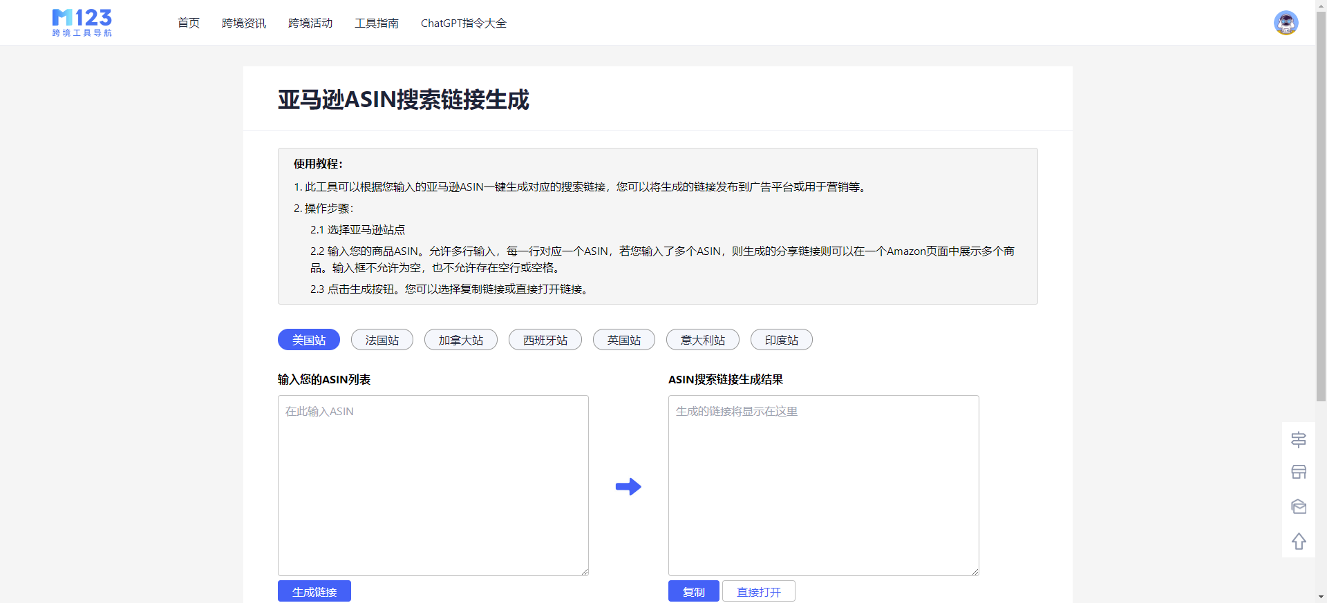 打开网页https://www.m123.com/tools/amzasinurlcreate,就能看到这个工具
