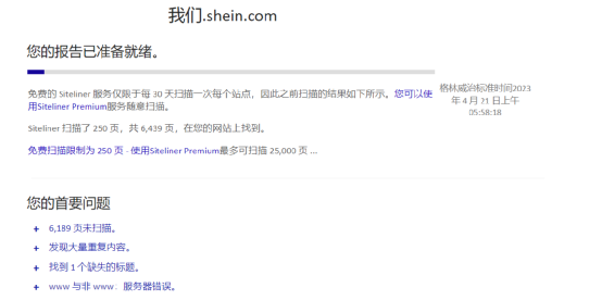 Siteliner是一款检测死链和网站重复内容的工具,但禁止被搜索引擎索引的网站无法查询。