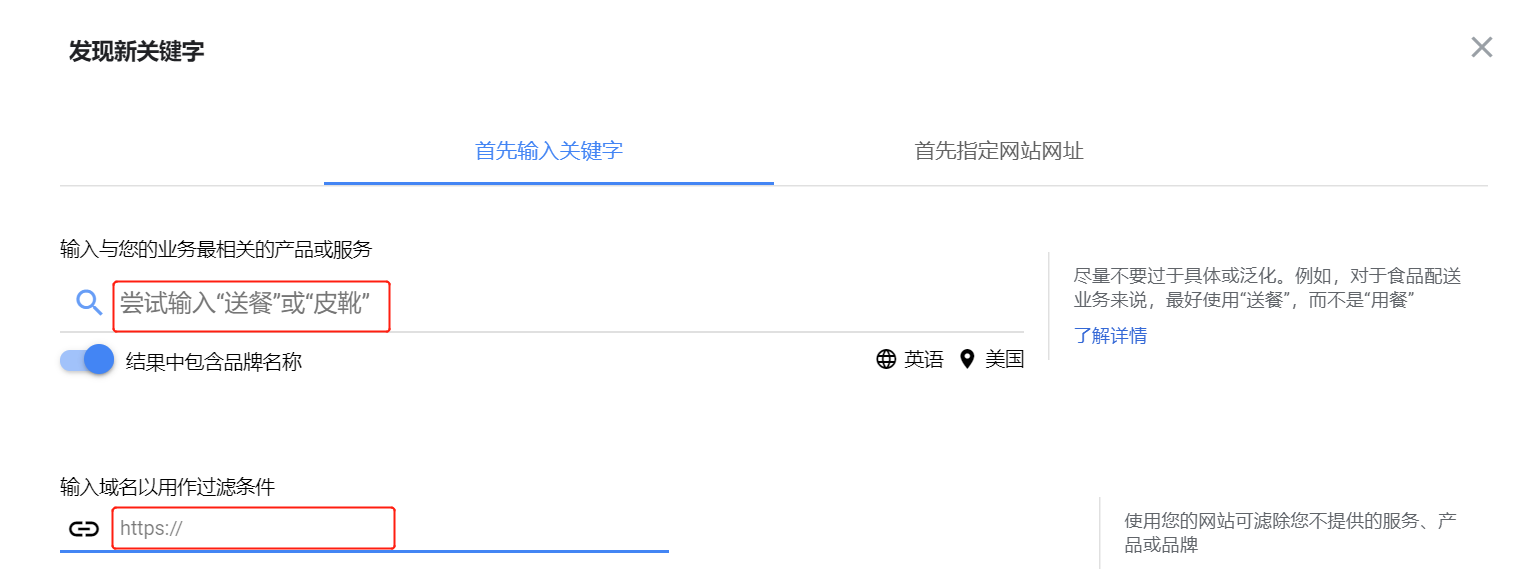注意:右侧的语言栏必须与您输入的关键字对应的语种相匹配