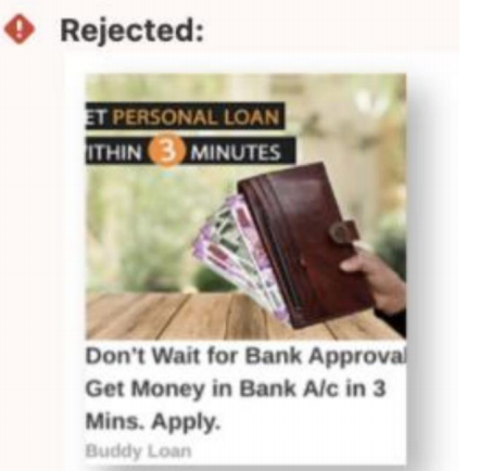 - 标题中不能包含任何缩写的贷款条款,如:“快速获得500美元的贷款”。