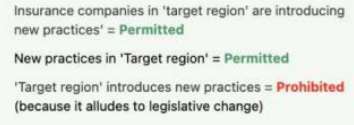 - 不能使用误导性语言暗示其已更改立法,如:暗示有新的规则、法律、指南。