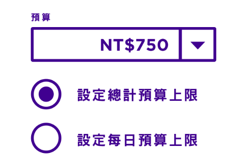 每个广告群组的CPC起标价最低为NT$1.5,当你输入的价格过低时,广告可能会无法曝光;若你的广告群组选择的是CPV计价方式,建议你起标价最低为NT$0.3。