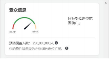 可参考估计覆盖人数表盘提供的数据,大致了解潜在受众群体的规模,指针指向绿色会比较合适。