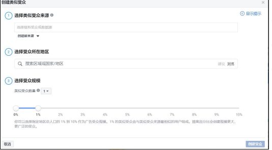 创建类似受众可能需要6-24小时才能完成,完成之后只要类似受众正用于投放中的广告组,需要每3-7天刷新一次。