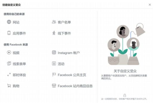 已知客户的再营销,根据广告主提供数据库的信息,系统Facebook用户中进行匹配来寻找到现有受众。
