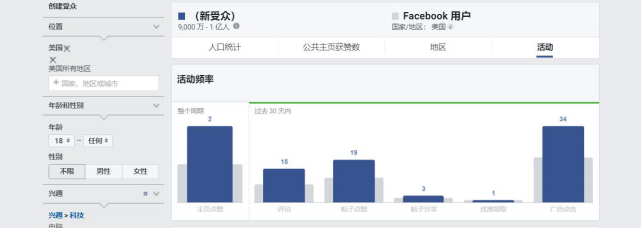 了解各类型受众之后,就需要对受众进行分析,找到广告的最佳受众,针对此问题。卖家可使用免费工具Audience Insights来了解受众的具体信息,数据来源主要由Facebook数据和第三方合作伙伴数据构成。