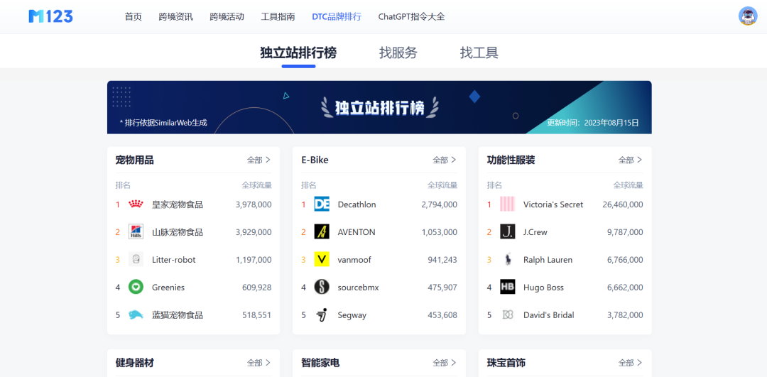 M123上面盘点了独立站排名,可以去一探究竟哦~