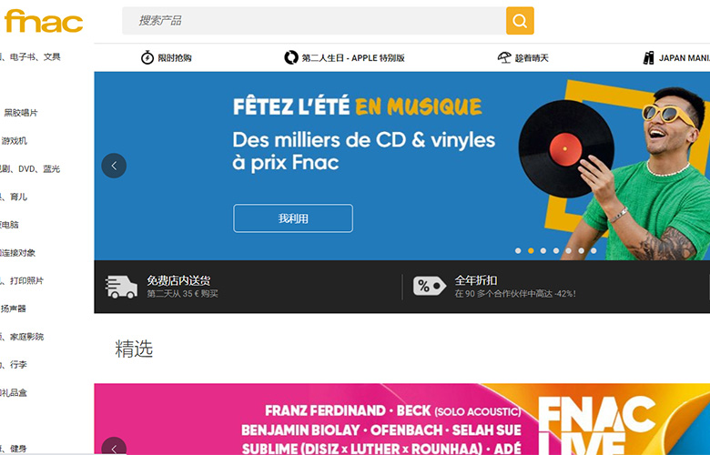 FNAC 总部位于法国,是欧洲最大的文化及消费电子产品零售商之一。拥有超过400多家店铺,覆盖法国、西班牙、葡萄牙、比利时、瑞士等欧洲国家,是跨境卖家进入欧洲市场的理想平台之一。FNAC 提供完善的多语言服务、物流体系以及售后服务,帮助卖家提高销售业绩和用户满意度。